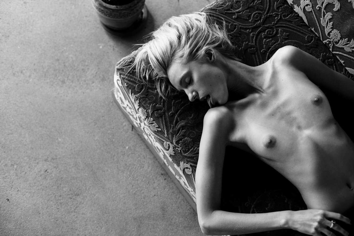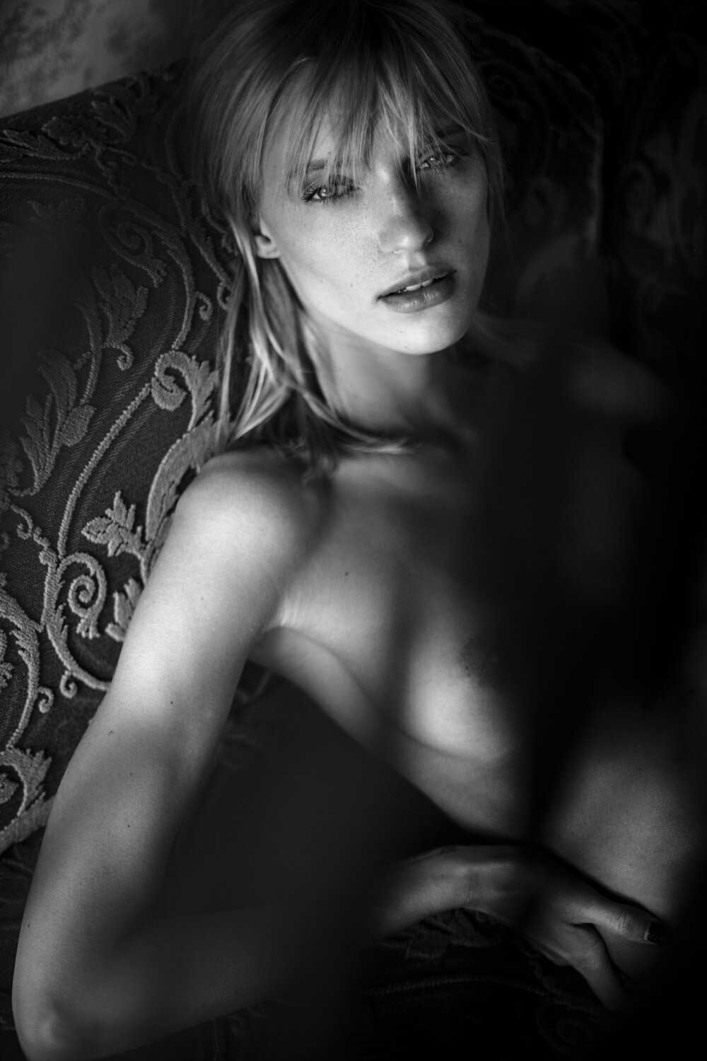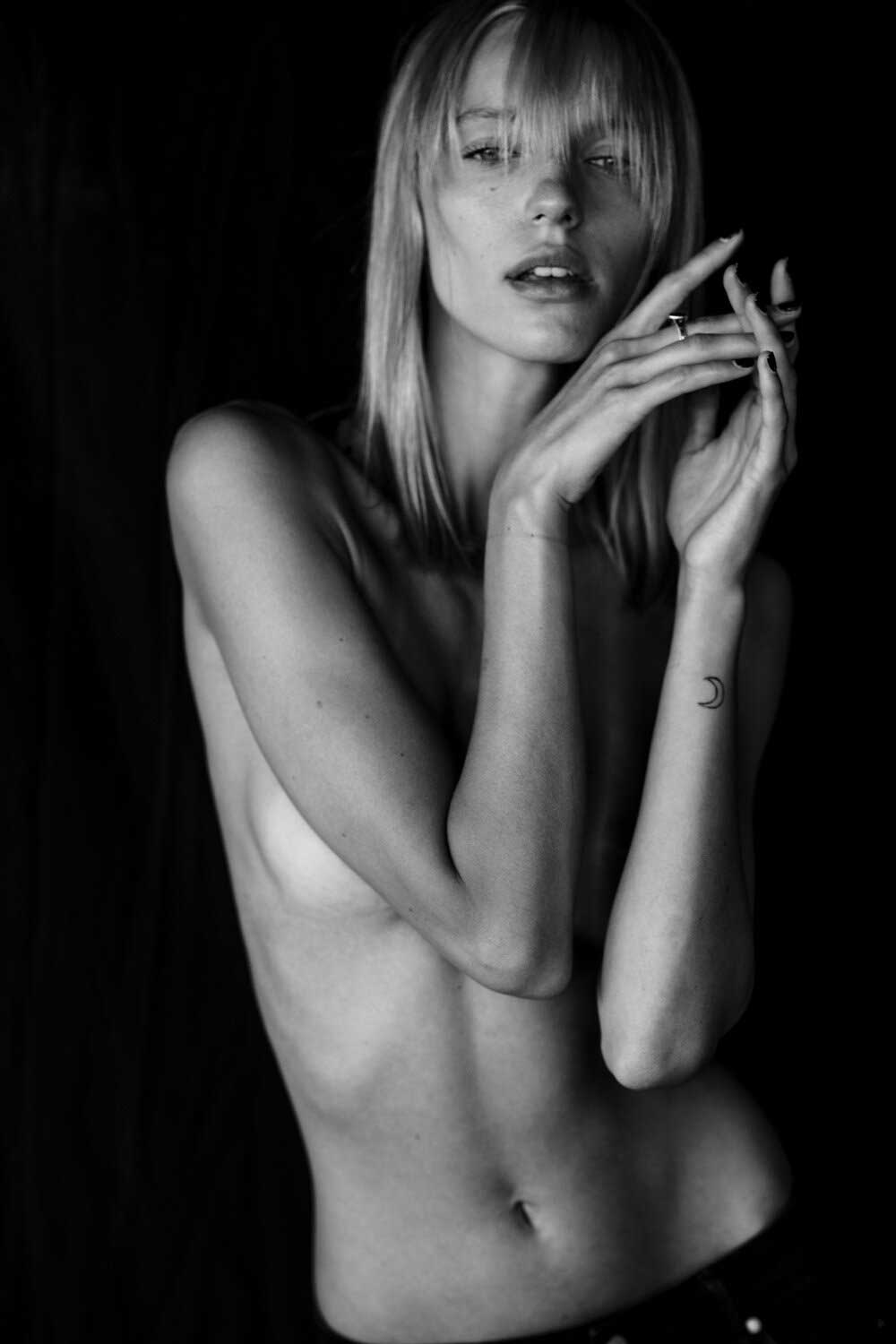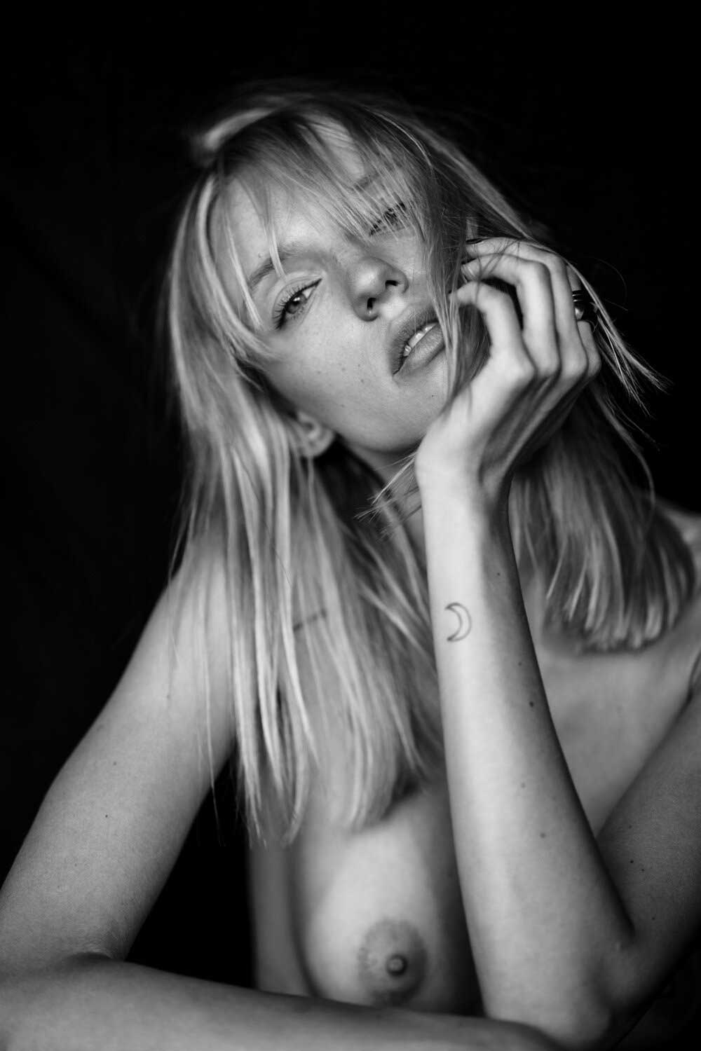 Κορμί λεπτοκαμωμένο χωρίς ίχνος περιττής σάρκας επάνω του. Το μόνο που… φούσκωσε λιγάκι είναι τα στηθάκια του, που στέκονται στον κόρφο του στρογγυλά και ορθά και τα στολίζουν δυο μεγάλες ρώγες. Πρασινομάτα από τη Λιθουανία και ξανθιά η Diana Balaisyte (εδώ στον φακό του Tomas Domavicius), έχει χτυπήσει στο χέρι τατουάζ μισοφέγγαρο. Ισως για να μας θυμίζει τι γίνεται όταν η Σελήνη γεμίζει, τότε που στα θηλυκά ξυπνούν άγρια ένστικτα, γίνονται θεριά ανήμερα πάνω στο κρεβάτι. Μια… σεξουαλική κούρσα με το δίμετρο κορμί θα ‘ταν η ωραιότερη εμπειρία.