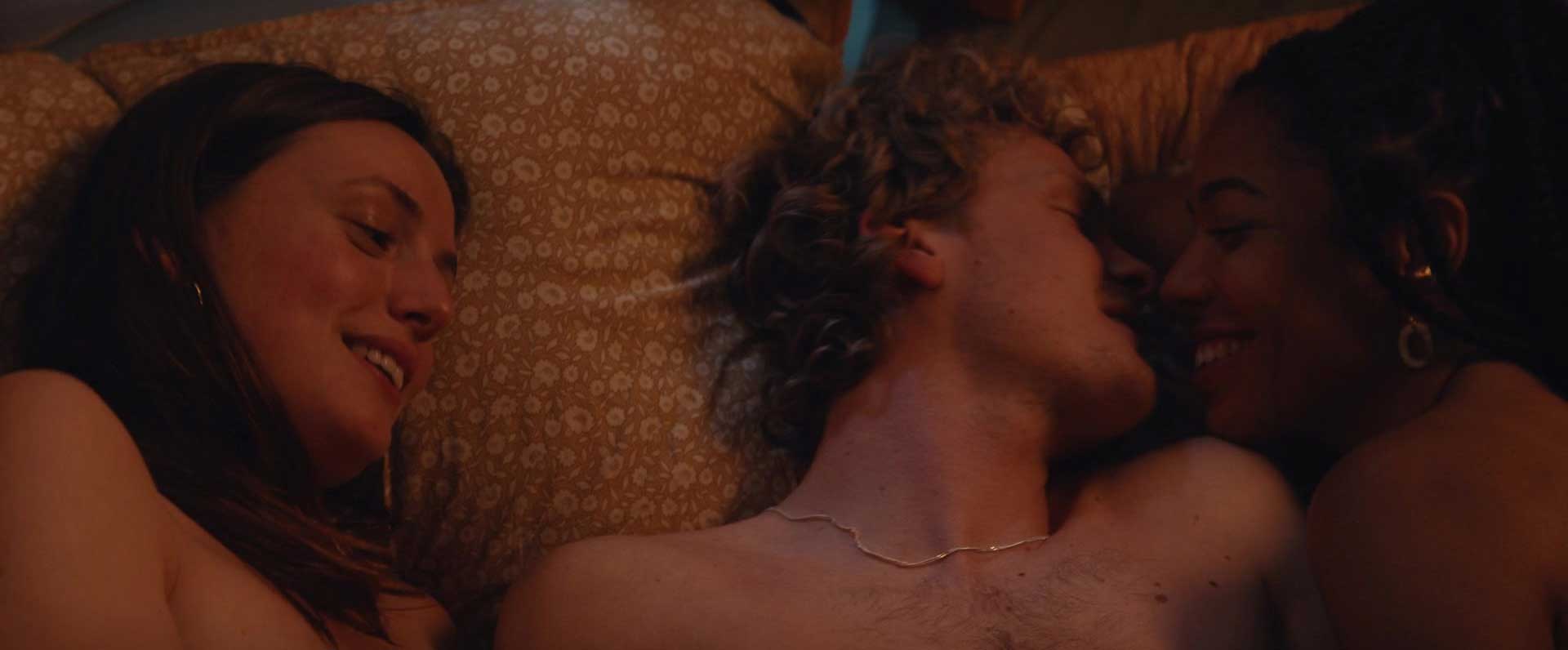 In September 2023, a Dutch film with lesbian scenes was released, entitled Happy Ending. The film stars Gaite Jansen and Joy Delima. Foreground in the video is a threesome scene, with the two actresses and their co-star. This is followed by two hot scenes of lesbian sex from the two women. Only though, Gaite makes up for it, as in all the scenes she shows us her small breasts and nice nipples naked. But Joy, doesn't dare to show anything but her passion while having sex. As far as the plot of the film is concerned, it deals with the relationship of a couple. Luna (Gaite) and Mink are a couple celebrating their anniversary. But Mink is unaware that Luna has been faking her orgasms since the beginning of their relationship. But because Luna has kept it a secret for so long, he doesn't dare mention it to him. Then, her best friends, who know about her problem, urge Luna to try new things in the bedroom with Mink.