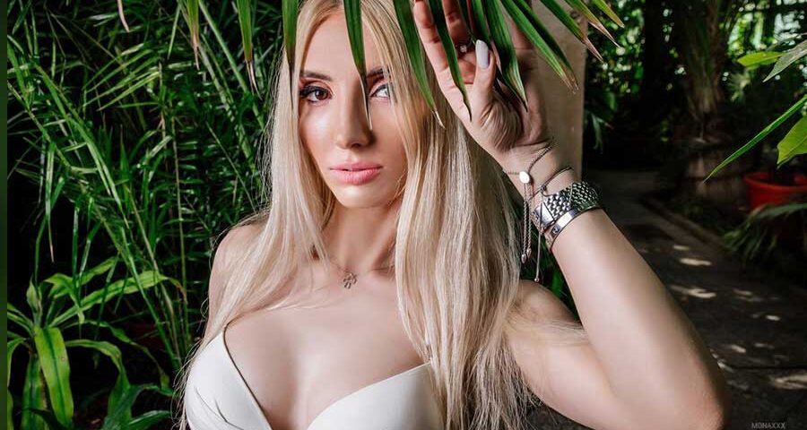 Είναι φλογερό θηλυκό που ξέρει καλά τη δουλειά του. Και ποια είναι αυτή; Να στήνεται ολόγυμνη μπροστά στην κάμερα, να χαϊδεύεται, να παίζει με τα μεγάλα, χορταστικά του στήθια και να κάνει τα αρσενικά μα τελειώνουν, εκπληρώνοντας όλες τις φαντασιώσεις τους. Είναι κορμί φωτιά και λαύρα και χώνει με δύναμη όλα τα δάχτυλα στην πάντα υγρή σχισμούλα που έχει ανάμεσα στα πόδια του. Η ξανθιά, Mona.